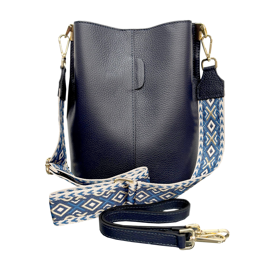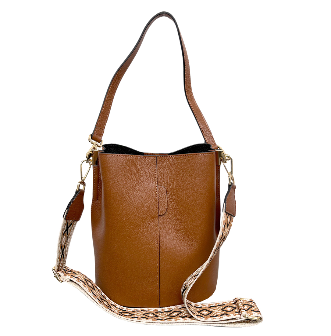 Bolso CUBO de piel con una correa larga estampada y una correa corta de piel