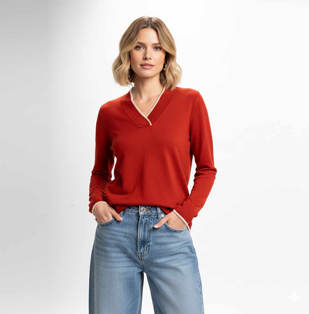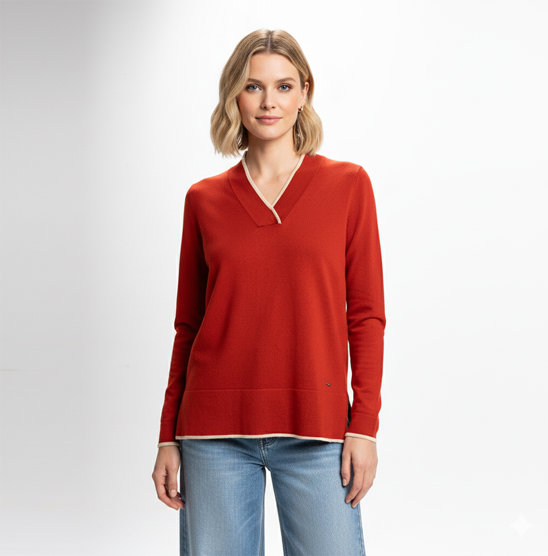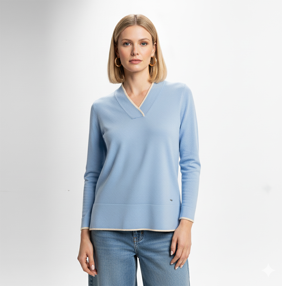 Jersey con cuello pico y vivo a contraste