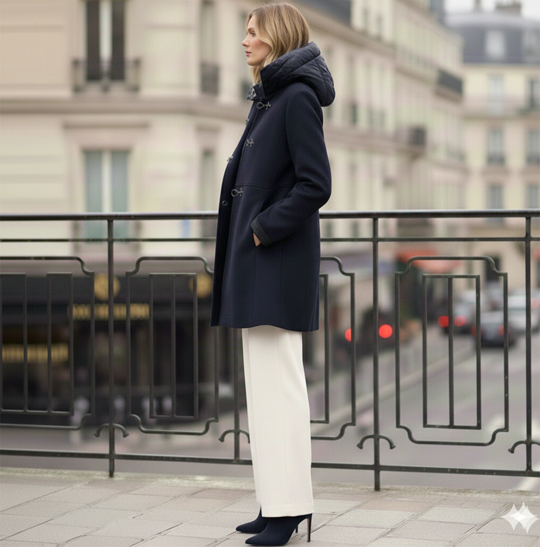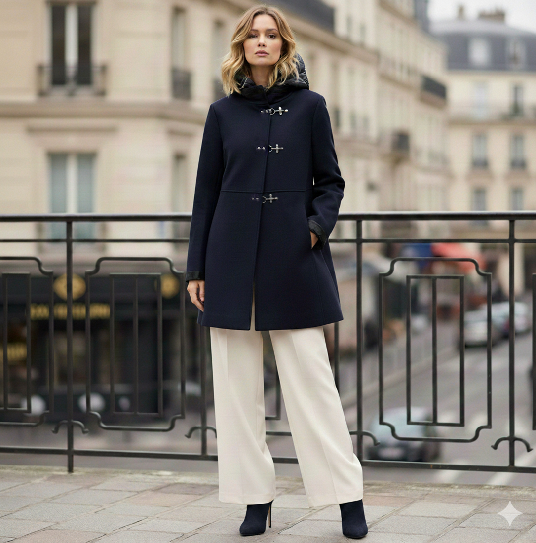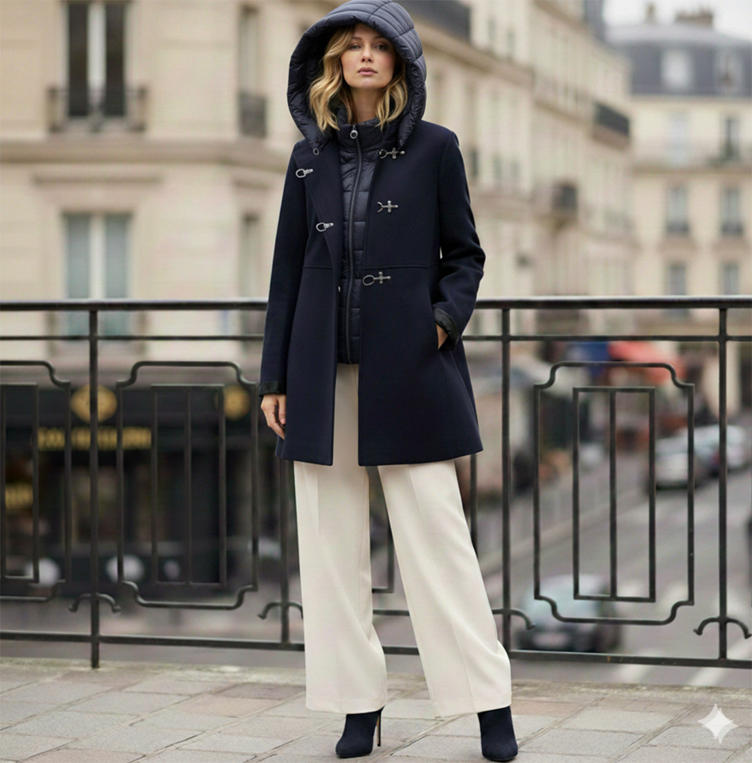 Parka FANNY de paño combinada con falso chaleco y capucha desmontable